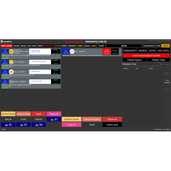 Tüm online siparişlerinizi aynı anda yönetir. Hiçbir verinizi üçüncü şahıslarla paylaşmaz tüm süreçler sizin bilgisayarınıza kaydedilir. Tam bir veri güvenliği sağlanır. Online sipariş masa yönetimi, kurye yönetimi, el terminali ile masada sipariş alma ve tüm raporlama işlemlerinizi yapar. Her türlü yapıya entegre olabir kendi sitenizden sipariş alıp onları da PandaPOS ekranından yönetebilirsiniz